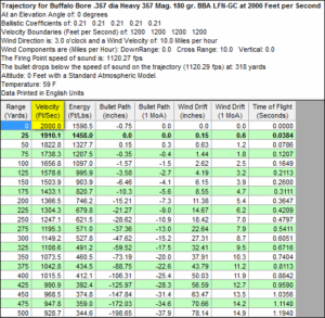 Bullet Drop Chart